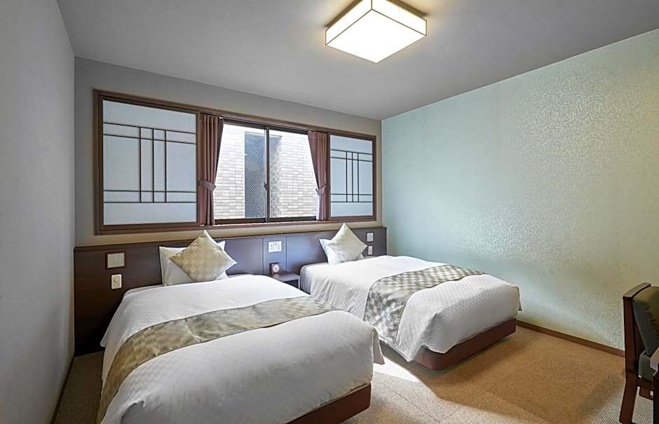 This twin room has a soundproofing, satellite TV and air conditioning. This room features a view of Higashi Hongan-ji. Room size is 28 square yards.