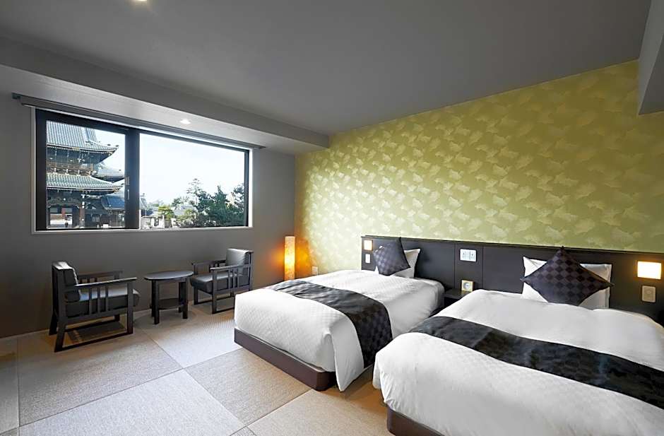 This twin room has air conditioning and soundproofing. This room features a view of Higashi Hongan-ji. Room size is 24 square yards.